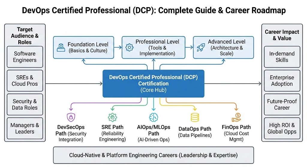 - What kind of jobs can I get after completing the DCP Professional level? You will be qualified for roles such as DevOps Engineer, Cloud Engineer, Site Reliability Engineer, and Platform Engineer. Many companies also look for these certifications when hiring for Senior Developer positions that require infrastructure knowledge. Furthermore, automation-focused roles in Quality Assurance and Security are also within reach. The certification signals to recruiters that you can handle the responsibility of a production environment. Consequently, you will find opportunities in startups, large enterprises, and consultancy firms alike. Your ability to bridge the gap between code and infrastructure will be your biggest selling point.