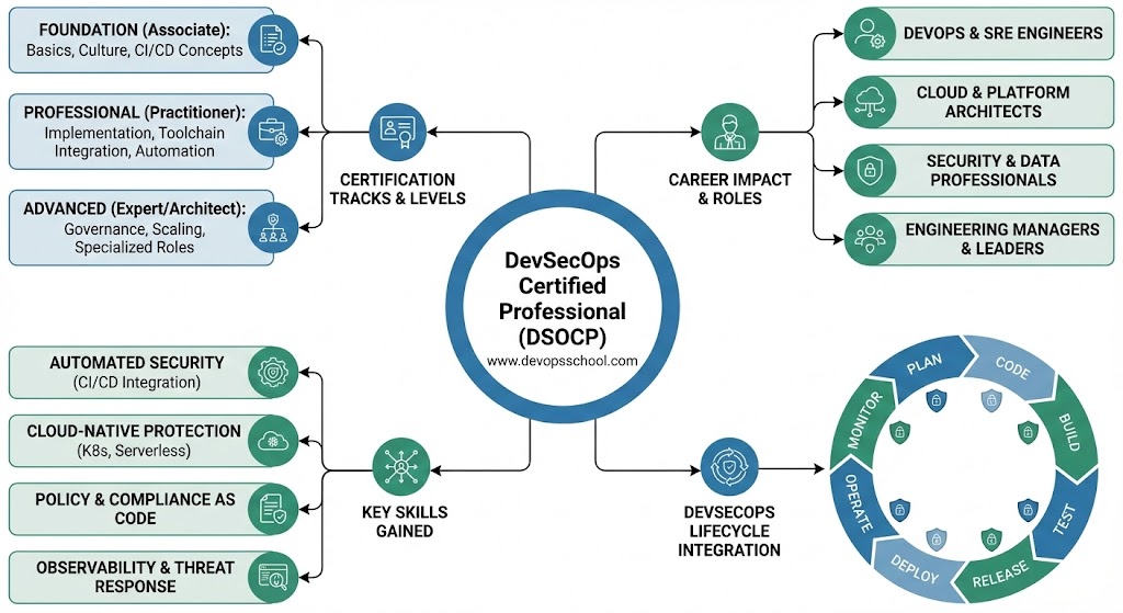 The program is delivered via the DevSecOps Certified Professional (DSOCP) course and hosted on DevOpsSchool. This curriculum utilizes a practical, hands-on assessment approach rather than relying solely on multiple-choice questions. Moreover, the ownership of the certification lies with industry veterans who understand the nuances of real-world production environments. The structure is designed to guide a learner from basic security concepts to complex automated governance. Consequently, candidates gain a deep understanding of how to audit, monitor, and protect automated pipelines. This practical focus ensures that graduates can immediately apply their knowledge to enterprise-level projects.